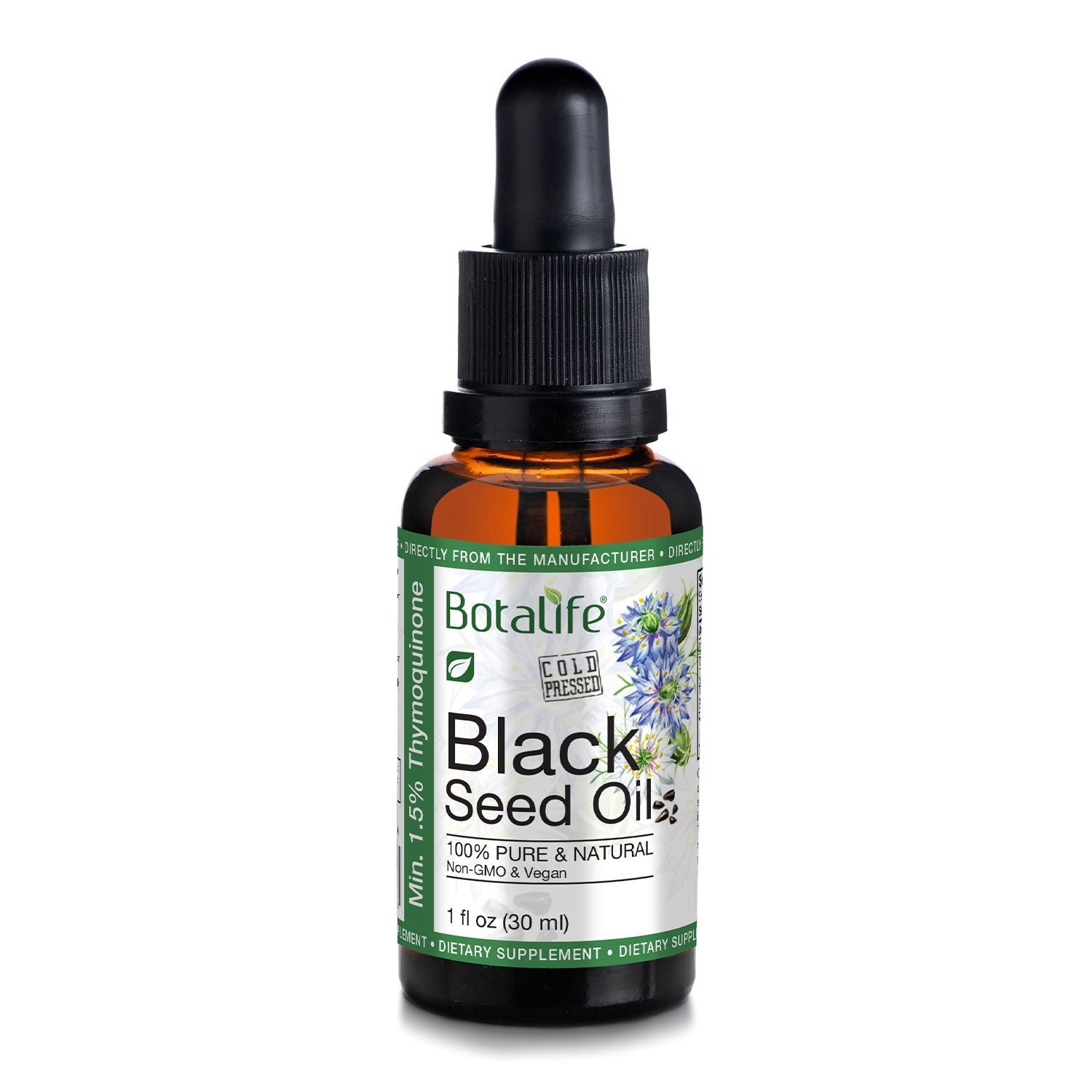 100% Pure • Cold-Pressed • Non-GMO • Vegan • Min. 1.5% Thymoquinone